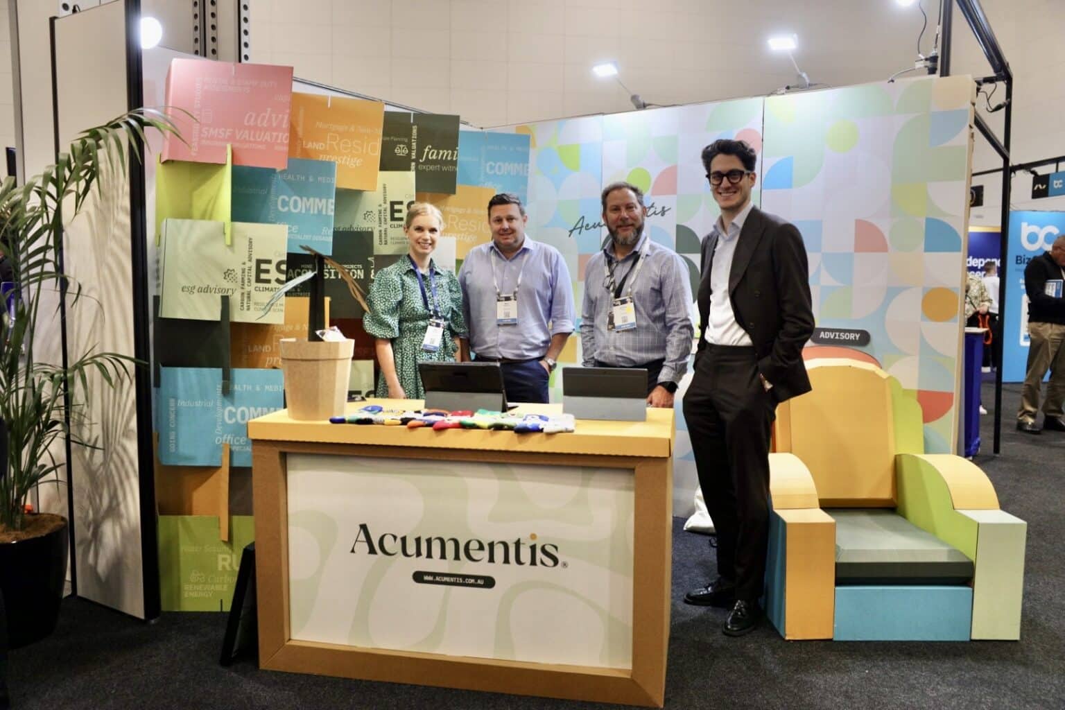 Acumentis ESG is making practical sustainability choices, including using a fully recyclable event stand designed to reduce environmental impact.